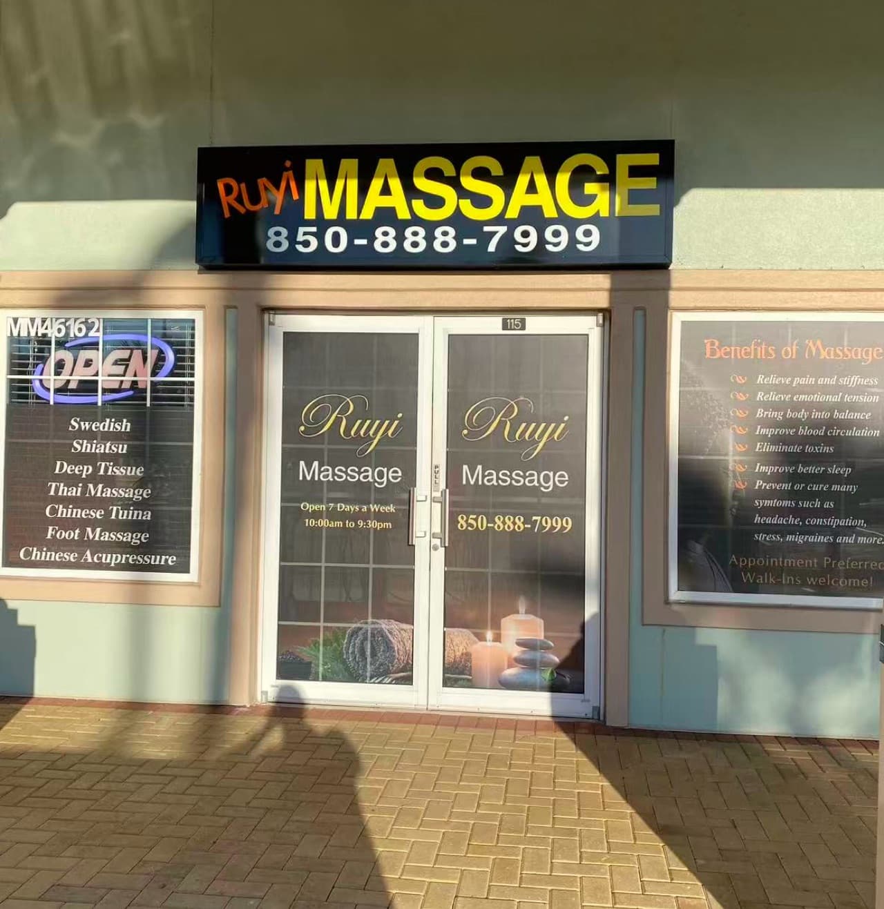At RUYI SPA(MM: 46162), we are dedicated to providing professional massage and bodywork services in a clean, calm, and relaxing environment. Our experienced therapists offer body massage, foot massage, Thai massage, and chair massage, with customizable add-ons such as body scrubs, essential oils, herbal oil, and cupping therapy. We focus on attentive care, quality techniques, and your comfort—helping every guest unwind, relieve tension, and leave feeling refreshed and restored.